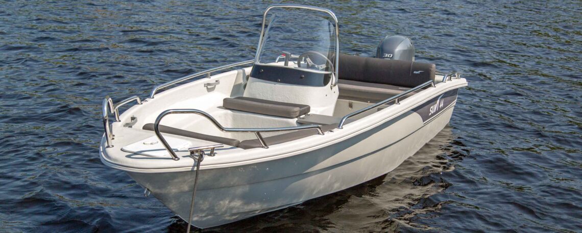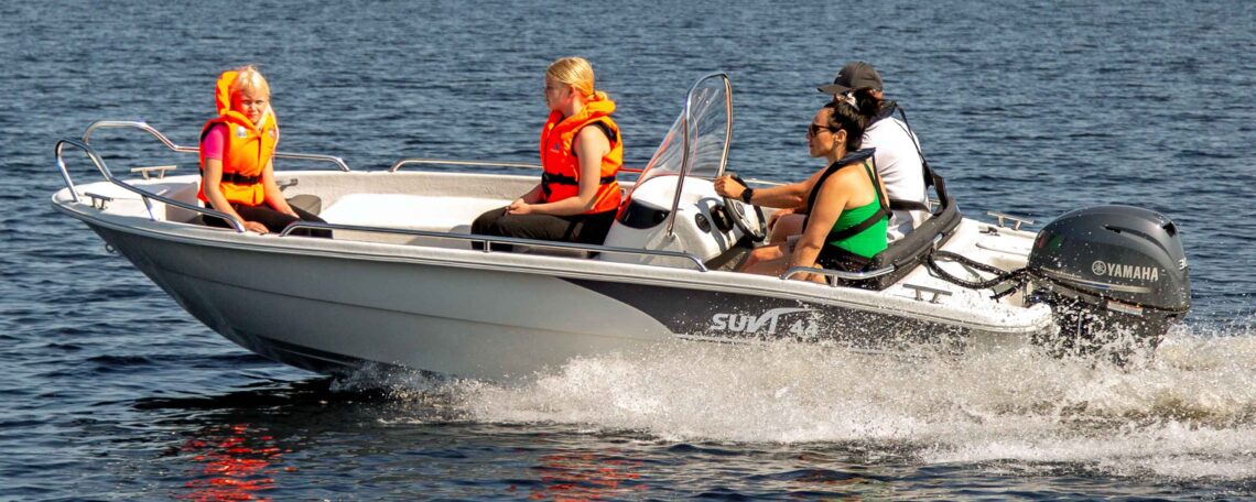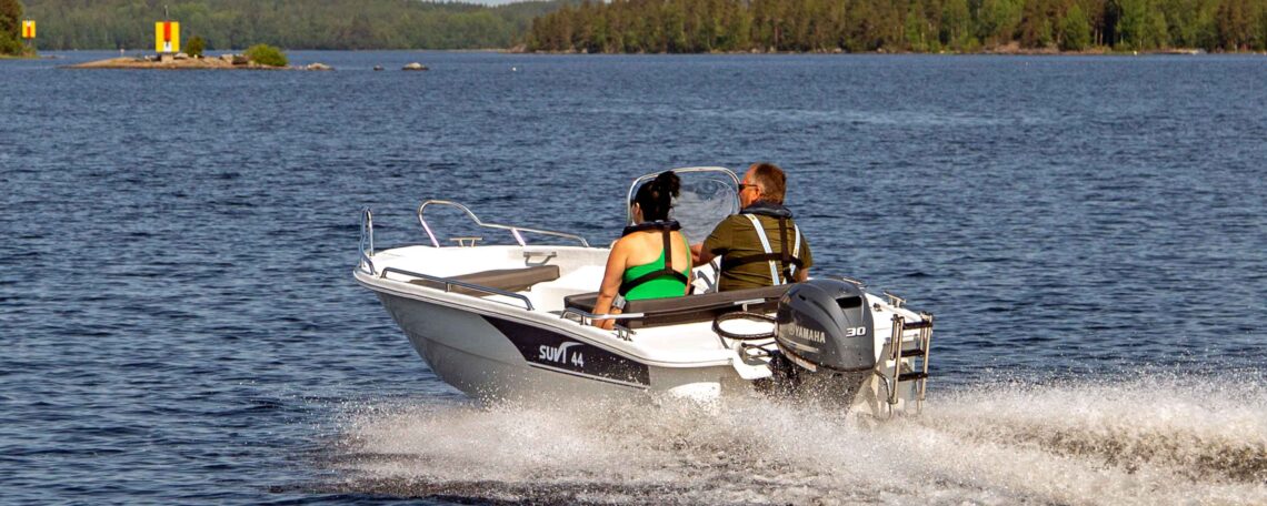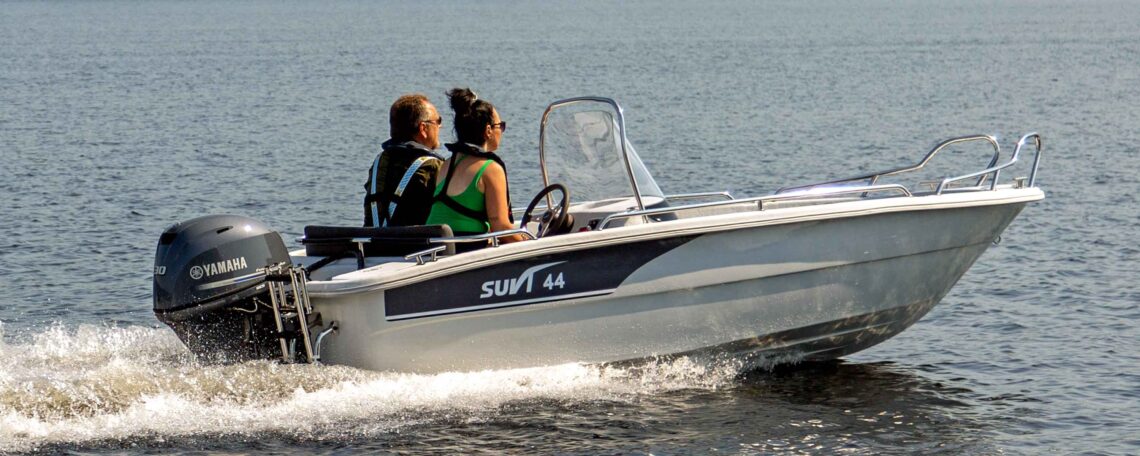 Suvi 44 on sadevesityhjenevä monitoiminen mökki/kalastusvenevene 4 henkilölle. Veneessä on reilut säilytystilat (mm. köysiboksit keulassa ja perässä sekä vapalaatikko n. 120 cm). Moottoriteho 20-30 hv. Soutumahdollisuus. Pitkärikiselle moottorille. Suvi 44-mallissa käytetään samaa erinomaista pohjamallia kuin Suvi 45 Duo-mallissa. Korvaa poisjäävän Suvi 4250-mallin.