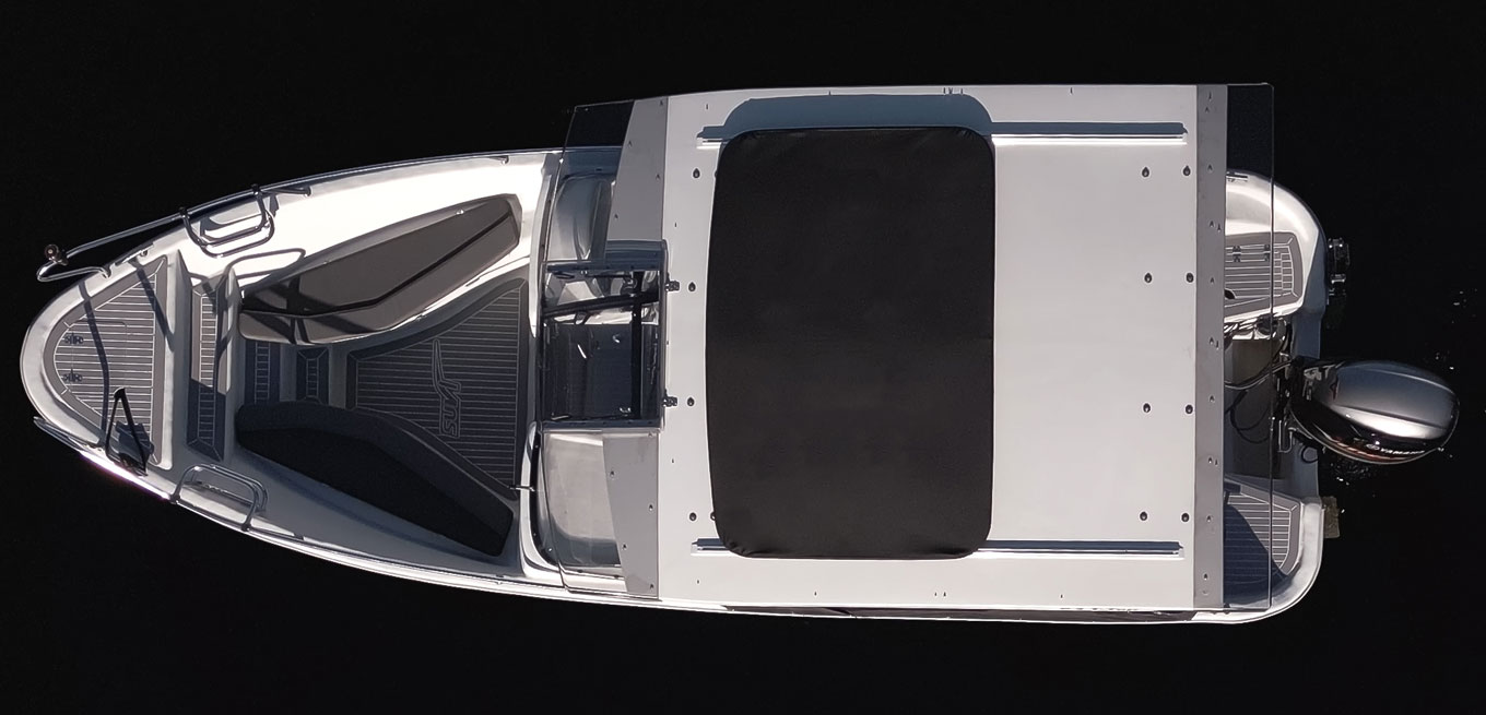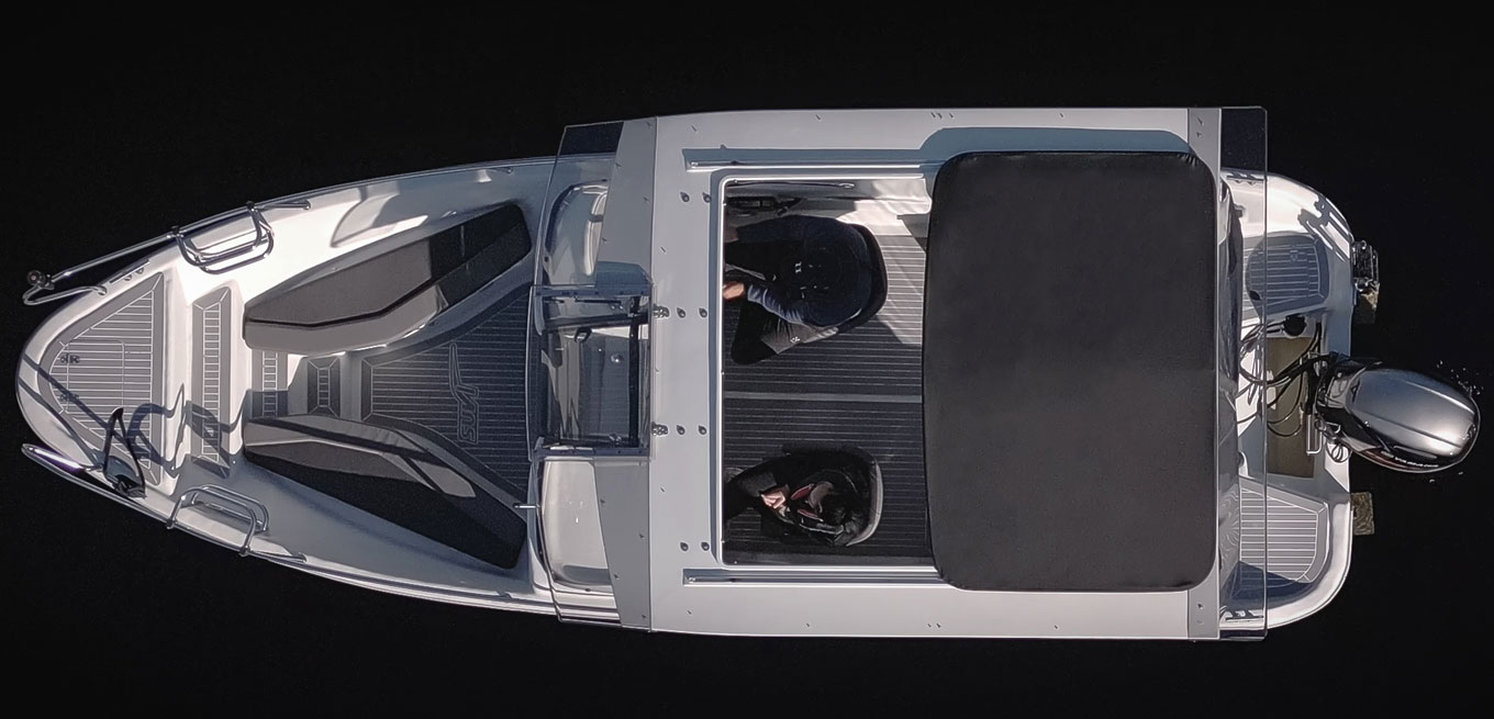 Suvi 63 T-Top on varusteltu suojaa antavalla pitkällä katolla. Katossa on suuri avattava liukuluukku, jolla saa halutessaan myös mukavaa avaruuden tuntua katettuun veneeseen. Katon etuosassa on kulkua helpottava ylöspäin aukeava pleksiluukku.