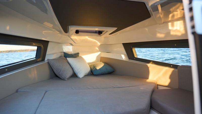 Veneessä on lukittavalla liukuovella varustettu kajuutta, johon suuret runkoikkunat ja avattava kattoluukku tuovat valoa. Kajuutta sopii mainiosti kahden aikuisen nukkumapaikaksi, samoin kuin lasten päiväunipaikaksi ja retkitavaroiden säilytykseen. Kajuutan vuoteen alla on suuri säilytystila ja asuttavuutta täydentää lisävarusteena saatava wc.