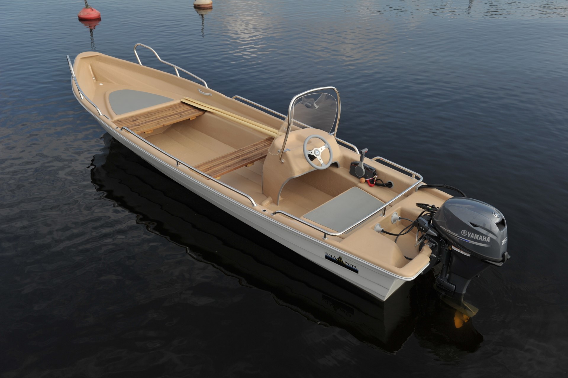 Kala-Palta on verkkokalastajien suursuosikki. Erittäin vakaa korkealla kölillä varustettu malli. Tässä moottoriveneessä on suuri avonainen sisätila ja voimakkaasti korotettu keula, joka mahdollistaa kalastamisen myös kovemmalla kelillä. Voit valita perusveneen ilman ohjauspulpettia (Kala-Palta MV) tai ohjauspulpetillisen version (Kala-Palta R), jonka voit lisävarusteilla varustella tarpeittesi mukaan. Kaksi eri mallia. Lyhyt- tai pitkärikiselle moottorille.