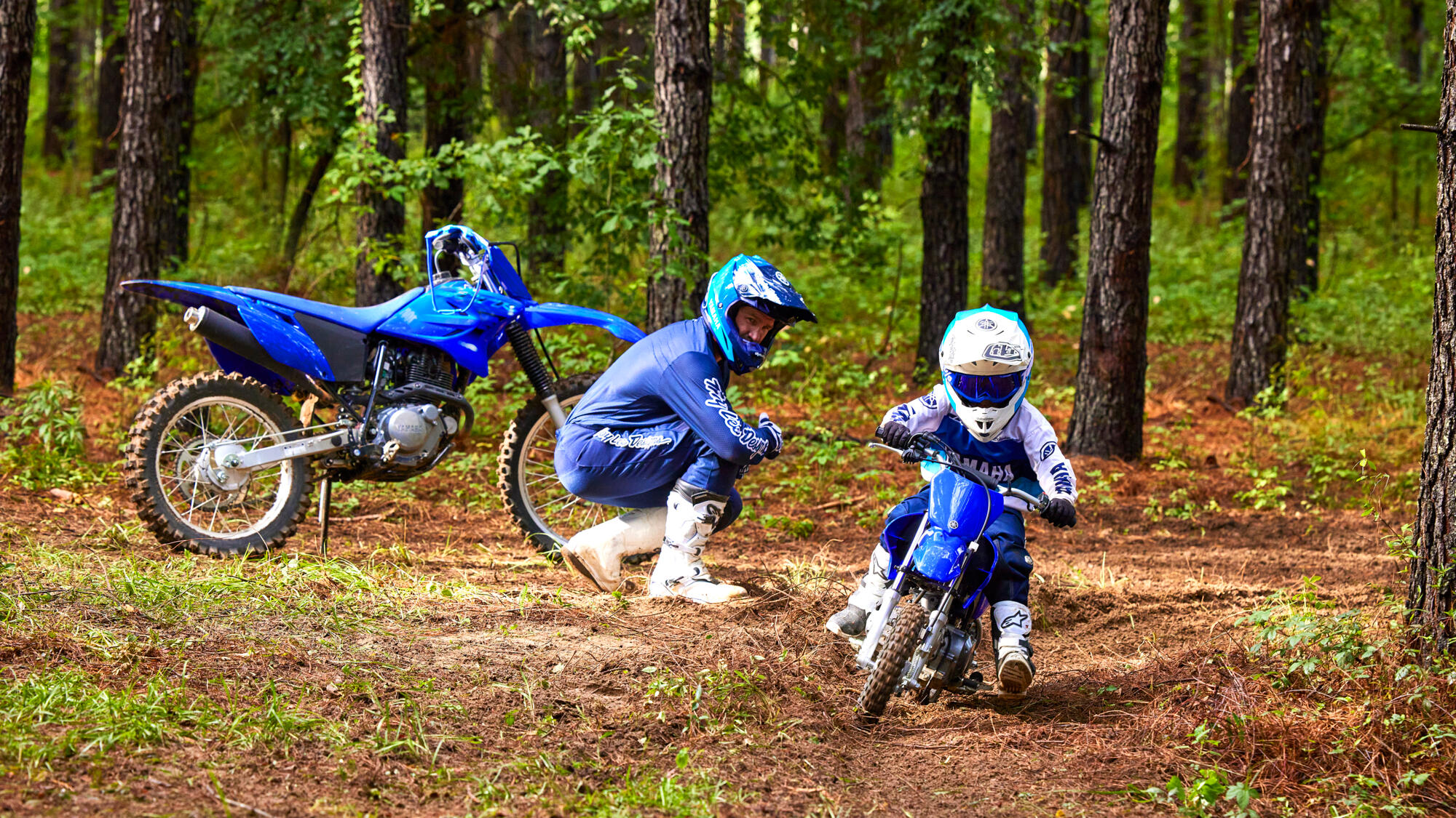 Virtaviivainen muotoilu ja tyylikäs Icon Blue -väritys perustuvat Yamahan voitokkaisiin GP-kilpapyöriin. Mukavan ergonomian, pitkäliikkeisen jousituksen ja asianmukaisen rengastuksen ansiosta TT-R50 tarjoaa perheen nuorimmille hauskoja ajoelämyksiä vuosien ajan.