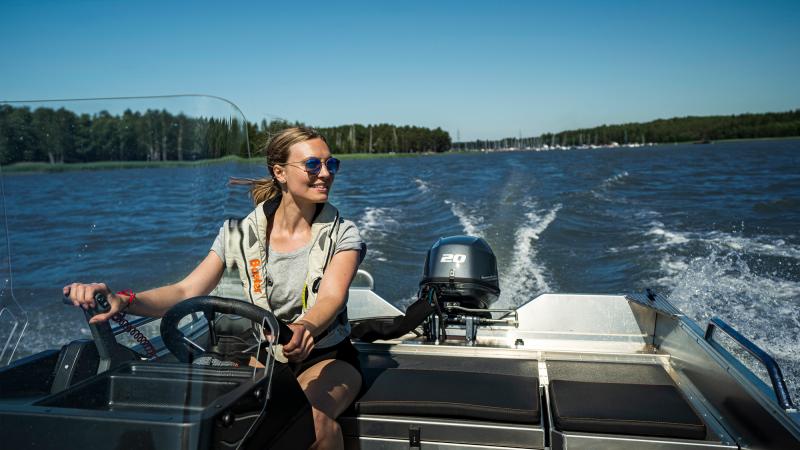 Se on nuoremmallekin kuljettajalle helppo ajaa ja käsitellä, ja leveän vesilinjansa ansiosta se on omassa koko- ja painoluokassaan äärettömän vakaa vene. Ohjauspulpetti on tukeva ja tuulilasi antaa hyvän suojan. Ajettavuudeltaan vene on todella miellyttävä, sillä se nousee helposti liukuun tarkasti suunnitellun pohjan V-kulman sekä hyvin kaasuun vastaavan Yamaha F20-perämoottorin ansiosta. Pienen moottoritehon ansiosta vene ei kuitenkaan vaadi rekisteröintiä.